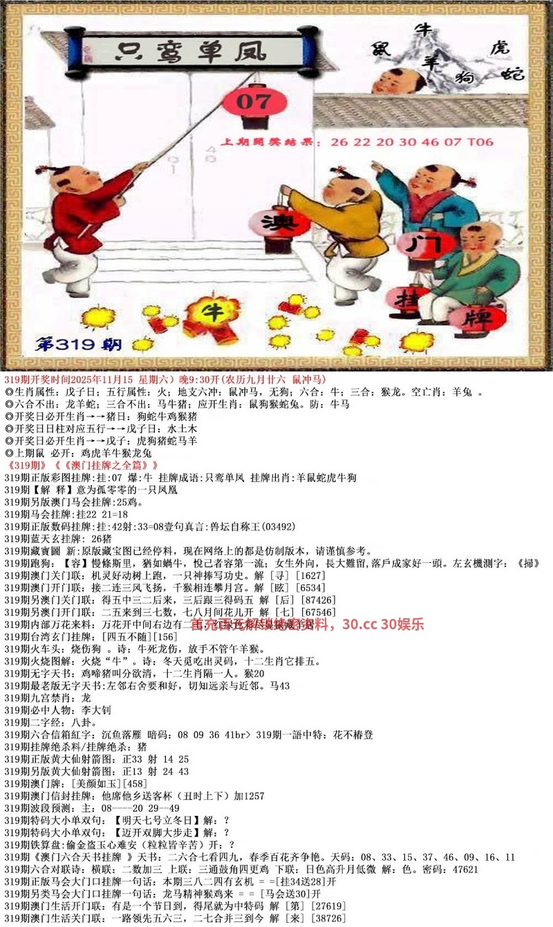 319期:🛵稳杀一肖【猴肖】开鸡45